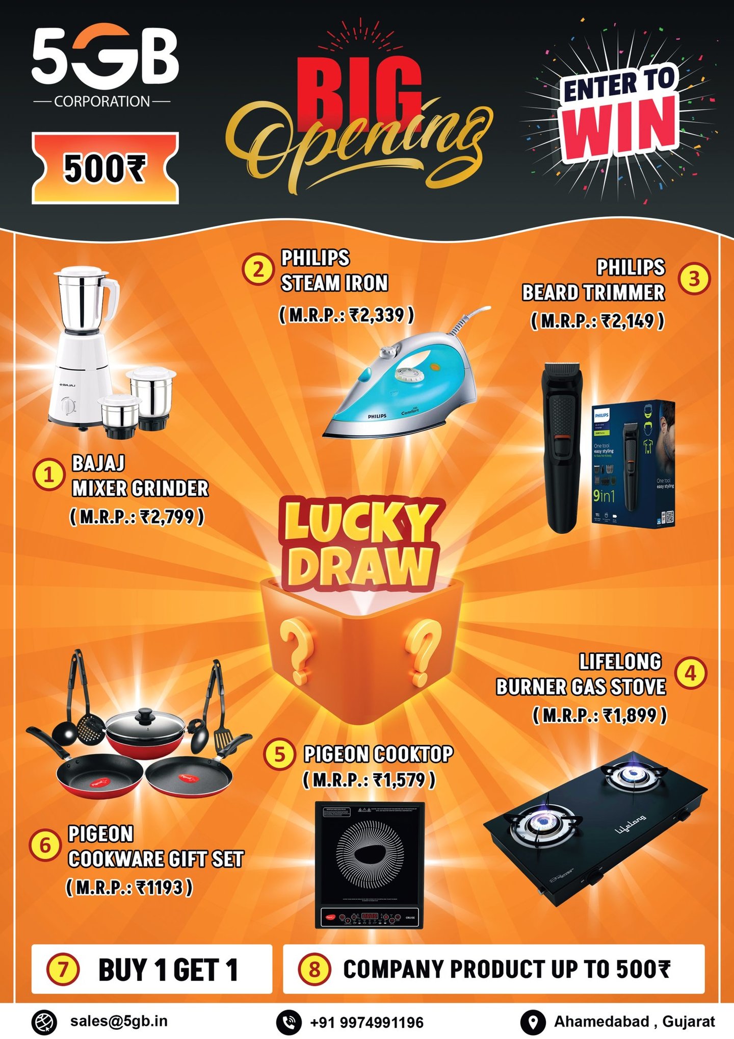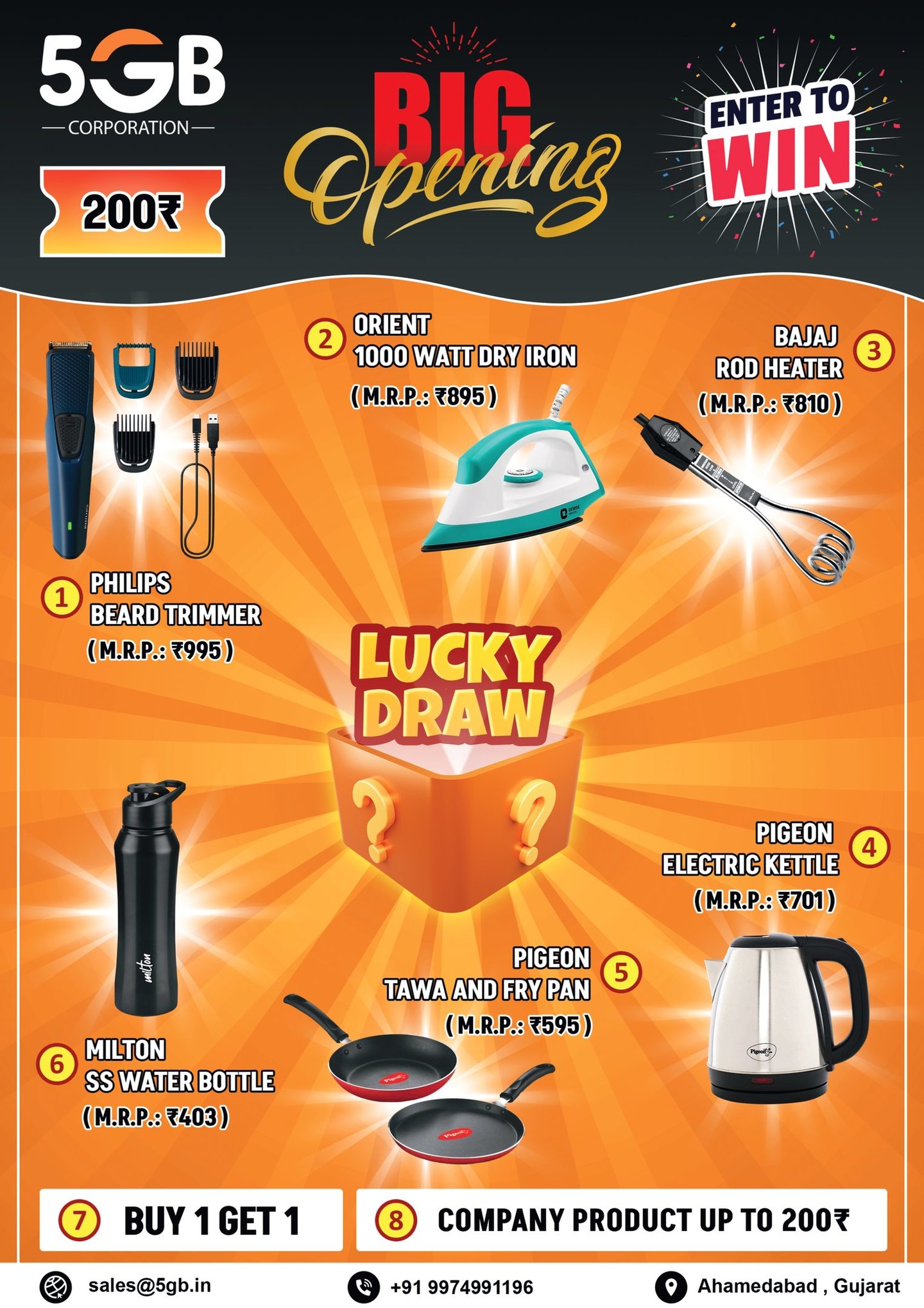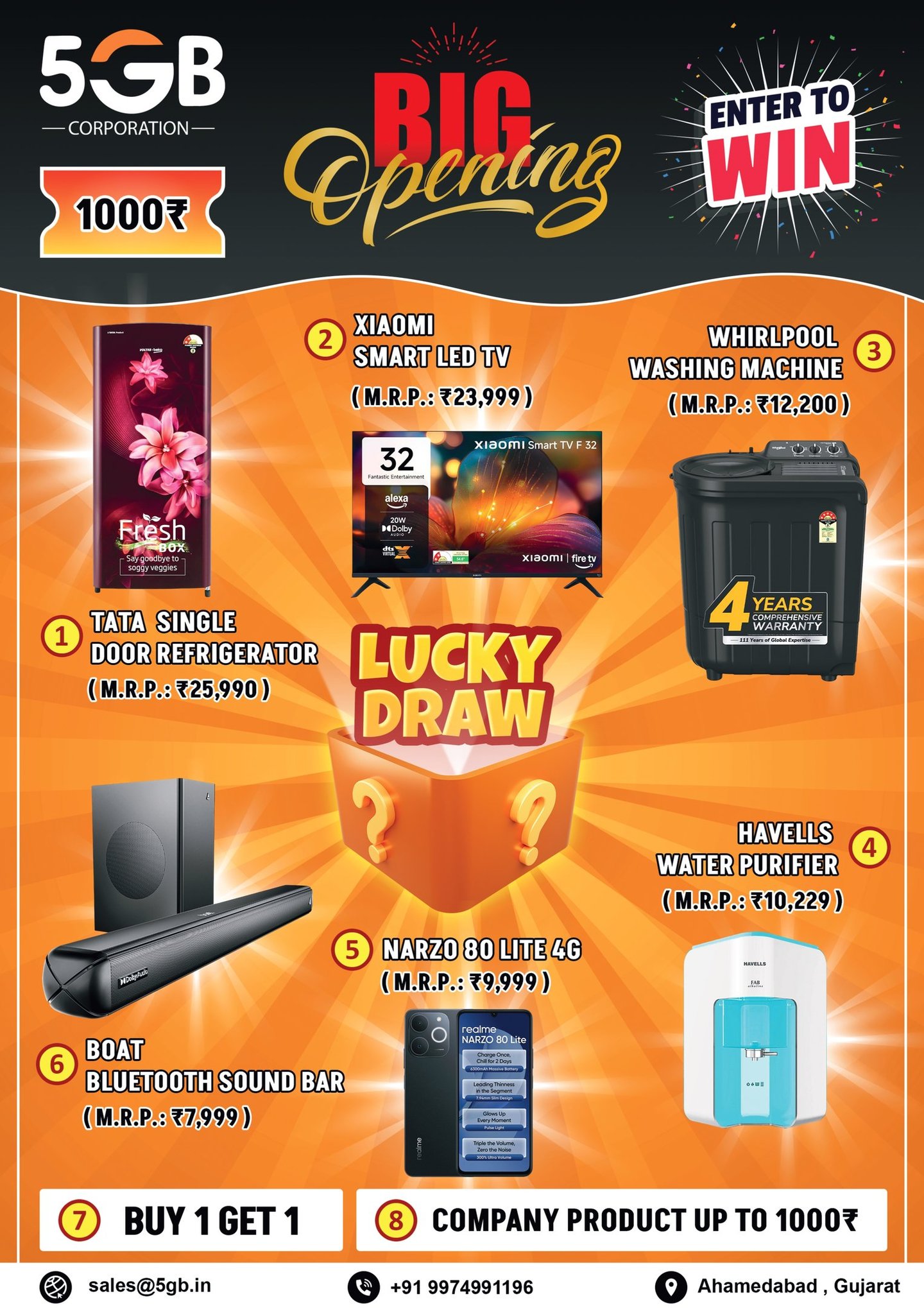 If your number matches the winning number announced by 5GB Corporation, you are eligible to receive the mentioned Gift Product or Prize.
