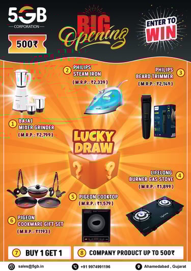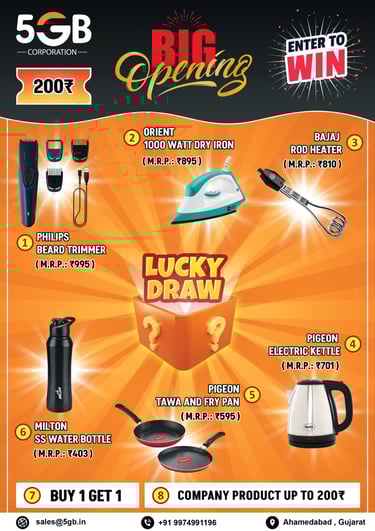 The Scratch & Win Offer is valid for a limited time only, as specified by 5GB Corporation. The company reserves the right to modify or withdraw the offer without prior notice.Fair Use & Fraud Policy: